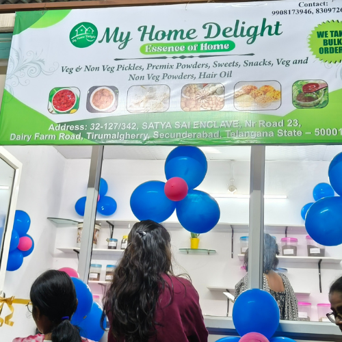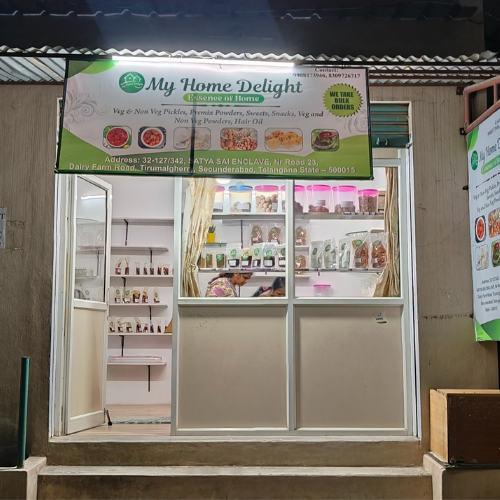 My Home Delight began as a passion project, born from a heartfelt desire to share the authentic flavors of home-cooked food with the world. What started in a humble kitchen is now a proudly run proprietorship that specializes in traditional pickles, sweets, snacks, podulu and pre-mix flours — all crafted with love, purity, and a commitment to quality.